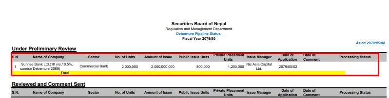 उक्त ऋणपत्रपत्रको अवधि १० वर्ष रहेको छ । ऋणपत्रका लगानीकर्तालाई बैंकले वार्षिक १०.५ प्रतिशत ब्याज भुक्तानी गर्नेछ। ऋणपत्र निष्काशन तथा बिक्री प्रबन्धकमा एनआइसी एशिया क्यापीटल रहेको छ ।