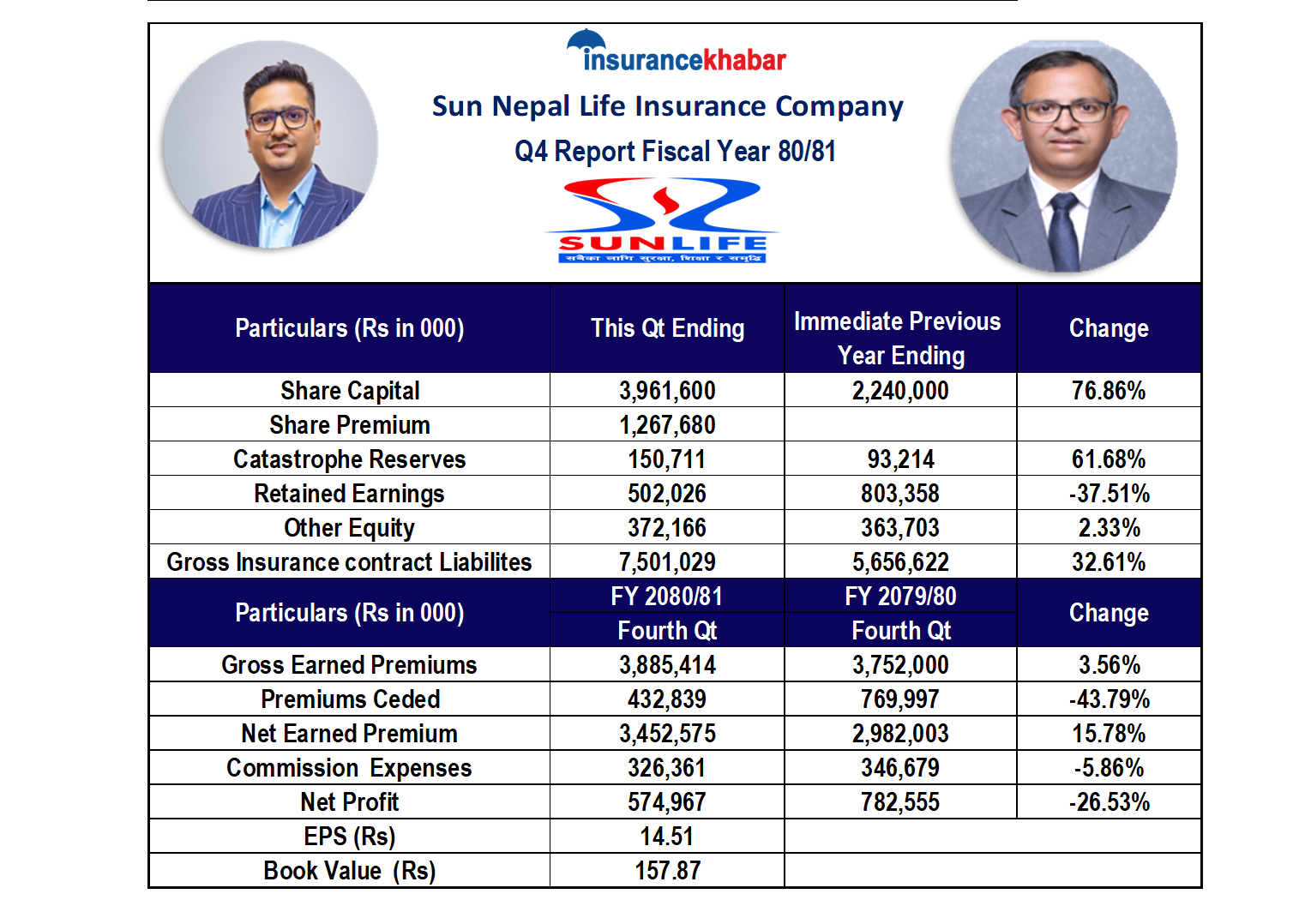 सन नेपाल लाइफको खुद बीमाशुल्क आर्जन १५%ले बढ्यो, जीवन बीमा कोषमा साढे ७ अर्ब
