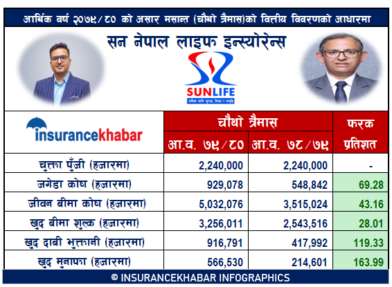 सन नेपाल लाइफको नाफा १६४ प्रतिशतले बढ्यो, खुद बीमा शुल्क आर्जन ३ अर्ब २५ करोडमाथि