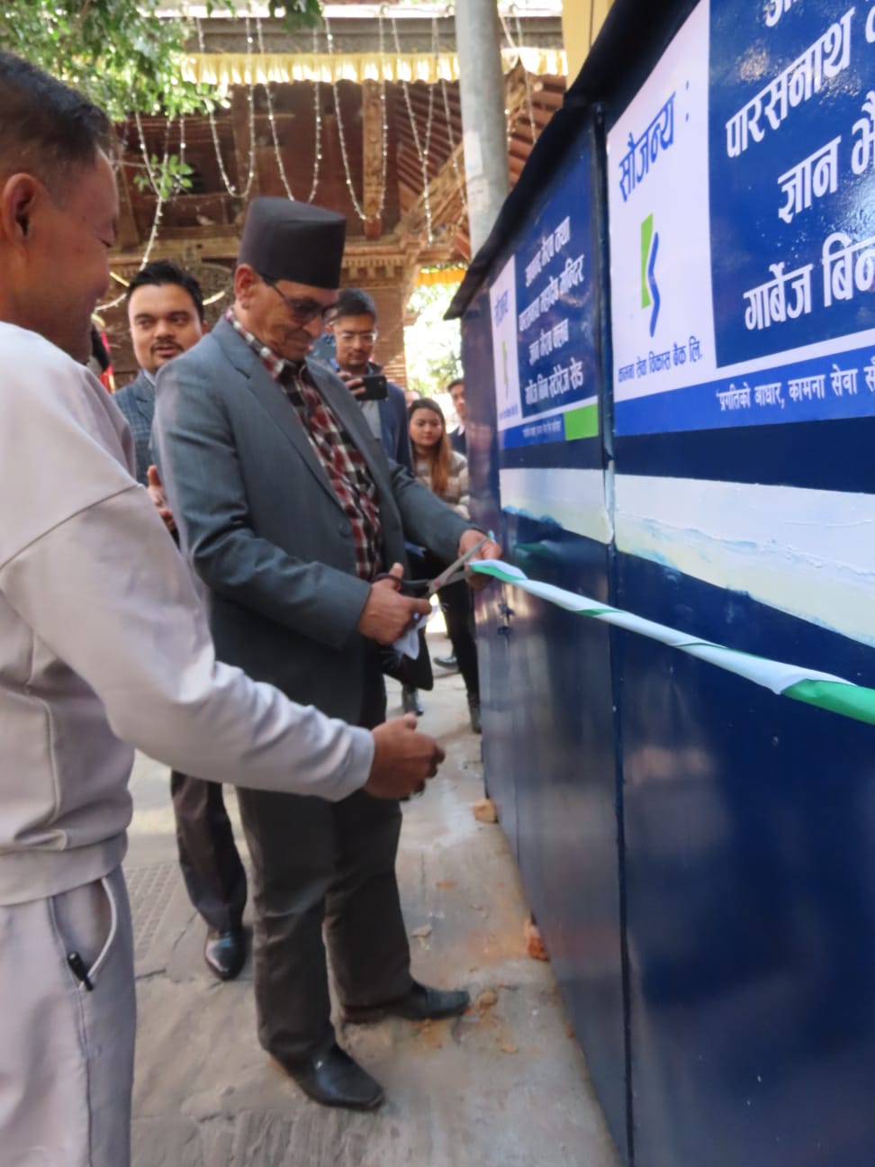 त्यसैगरी आज आनन्द भैरव मन्दिरको फोहोर व्यवस्थापनको लागि गार्वेज बिन स्टोरेज सेड तथा डिजिटल डोनेसन बक्स समेत हस्तान्तरण गरिएको थियो । उपरोक्त कार्यक्रमहरुमा काठमाडौं महानगरपालिका वडा नंं. ३० का अध्यक्ष दल बहादुर कार्की, ज्ञान भैरव क्लब (आनन्द भैरव मन्दिर) समितिका महासचिव रामेश्वर राउत तथा अध्यक्ष बसन्त राईले शुभकामना मन्तव्य दिनु हंदै बैंकले गरेको कार्य अत्यन्तै सराहनीय रहेकोले अरुले पनि यसको अनुसरण गर्नु पर्ने बताउँदै आगामी दिनहरुमा समेत बैंकसंग सहकार्य गर्ने प्रतिवद्धता समेत जाहेर गरे ।