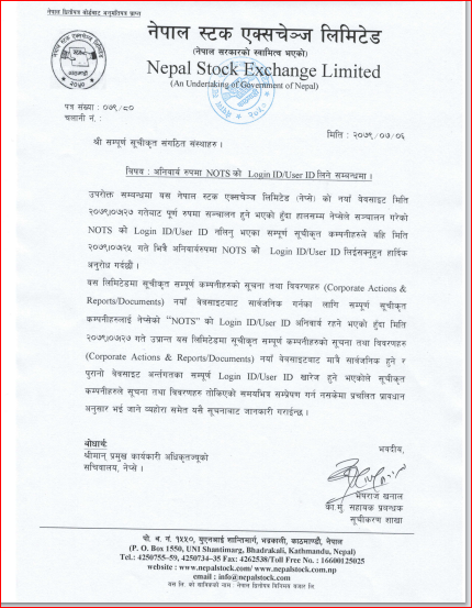 पुरानो वेबसाइट अन्तर्गतका सम्पूर्ण लगइन युजर आइडी खारेज हुनेछन् । त्यसकारण नेप्सेले अनिवार्य रूपमा नट्सको लगइन युजर आइडी लिन आग्रह गरेको हो ।