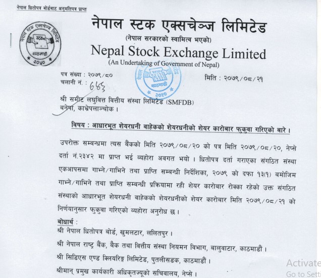 नेपाल धितोपत्र बोर्डले जारी गरेको धितोपत्र दर्ता गराएका संगठित संस्था एकआपसमा गाभ्ने गाभिने तथा प्राप्ति सम्बन्धी निर्देशिका, २०७९ बमोजिम मर्जर तथा प्राप्तिमा जाने कम्पनीको शेयर कारोबार अधिकतम १५ दिन मात्र रोक्का हुने ब्यबस्था अनुसार कम्पनीको शेयर कारोबार फुकुवा भएको हो ।