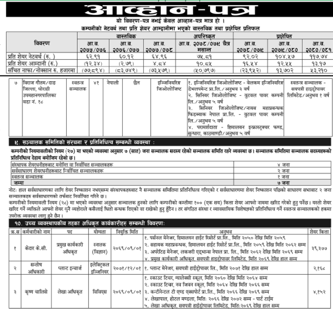 कम्पनीले प्रतिशेयर १ सय रुपैयाँ अंकित दरमा ३ लाख कित्ता आइपीओ स्थानीमा विक्री गर्नेछ । आयस आइपीओ खरीदका लागि आयोजना प्रभावित क्षेत्र अर्थात बागलुङ जिल्ला ताराखोला गाउँपालिका र गल्कोट नगरपालिकामा स्थायी बसोबास गर्ने बासिन्दाहरुले आवेदन दिन सक्नेछन् ।