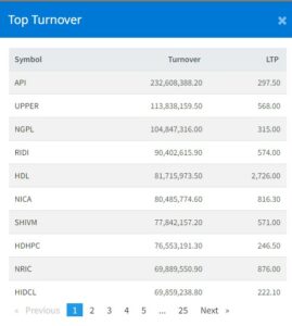 आज शेयर बजार बढ्दा सबैभन्दा धेरै अपि पावर कम्पनीको शेयर कारोबार भएको छ । कम्पनीले कुल २३ करोड २६ लाख रुपैयाँको शेयर कारोबार गरेको छ । यसैगरी अप्पर तामाकोशि हाइड्रोपावरले ११ करोड ३८ लाख रुपैयाँको शेयर कारोबार गरेको छ भने न्यादि ग्रुप पावरले १० करोड ४८ लाख रुपैयाँको शेयर कारोबार गरेको छ । साथै रिडिपावर कम्पनीले ९ करोड ४० लाख रुपैयाँको शेयर कारोबार गरेको छ ।