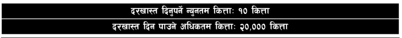 न्युनतम १० कित्ता देखि अधिकतम २० हजार कित्तासम्म आवेदन दिन सकिन्छ ।