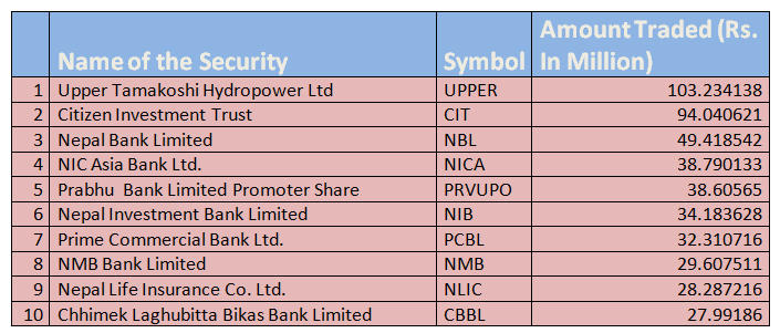 यो साता सबै भन्दा धेरै माथिल्लो तामाकोशीको शेयर किन बेच भएको छ भने दोश्रोमा नागरिक लगानी कोषको शेयर किन बेच भएको छ ।