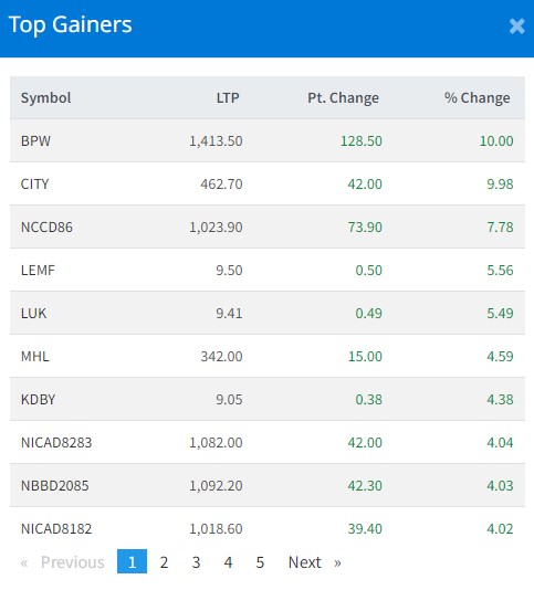यसैगरी आज सिटि होटलको शेयर ९।९८ प्रतिशतले बृद्धि भएको छ भने प्रति शेयर मूल्य ४६२ रुपैयाँ कायम भएको छ । आज एनसीसी डिवेन्चरका इकाइधनीले सर्वाधिक कमाएका छन् । आज कम्पनीको शेयर ७।७८ प्रतिशतले बृद्धि हुँदा प्रति इकाई मूल्य १ हजार २३ रुपैयाँ कायम भएको छ ।