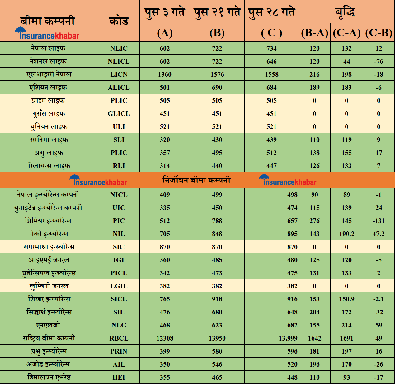 पुस महिनामा बीमा कम्पनीको शेयर मूल्य
