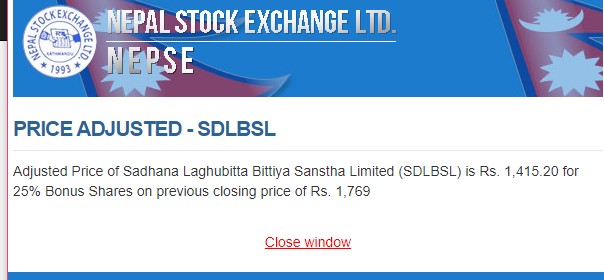 साधना लघुवित्तको शेयर मूल्य समायोजन