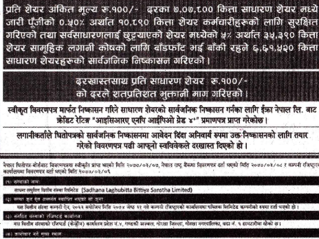 साधना लघुवित्तले असार २१ गतेदेखि आइपीओ निष्काशन गर्ने, कहिलेसम्म दिन पाइन्छ आवेदन ?