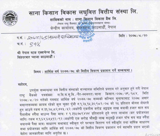 साना किसान विकास लघुवित्तको लाभांश राष्ट्र बैंकबाट स्वीकृत