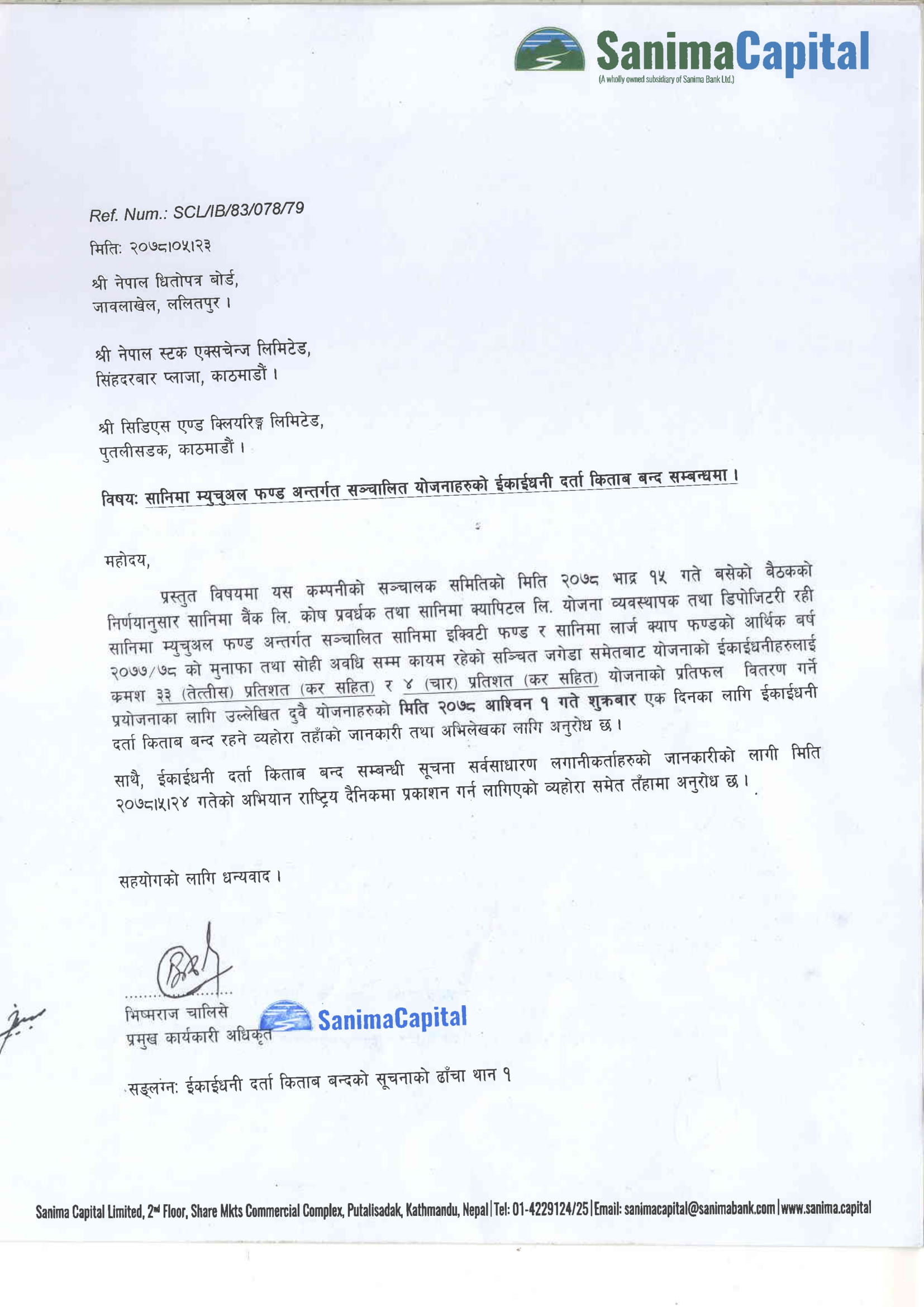 सानिमा क्यापिटलका दुई योजनाले तोके बुक क्लोज मिति