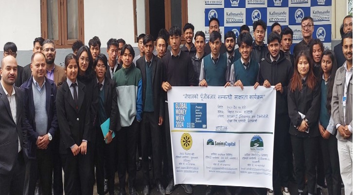 काठमाडौं । सानिमा क्यापिटल र सानिमा सेक्युरिटीजको संयुक्त आयोजना वित्तीय शिक्षा तथा सचेतना कार्यक्रम सम्पन्न भएको छ । ग्लोबल मनी विक २०२४ को अवसरमा विद्यार्थी तथा युवाहरुमा वित्तीय साक्षरता अभिबृद्धि गर्दै वित्तीय ज्ञान, सीप र मनोबृत्ति विकास गराउने उद्धेश्यका साथ सानिमा बैंक लिमिटेडको पूर्ण स्वामित्वमा रहेको सानिमा क्यापिटल लिमिटेड तथा सानिमा सेक्युरिटीज लिमिटेडको संयुक्त आयोजना र नेपाल धितोपत्र बोर्डको प्रत्यक्ष सहभागितामा धापासी, काठमाडौं माण्डौ स्थित काठमाण्डौ इन्स्टिच्युट अफ टेक्नोलोजी क्याम्पसका इन्जिनियरिङ्ग बिधामा स्नातक तहमा अध्ययनरत विद्यार्थीहरु बिच उक्त कार्यक्रम सम्पन्न गरेको हो ।