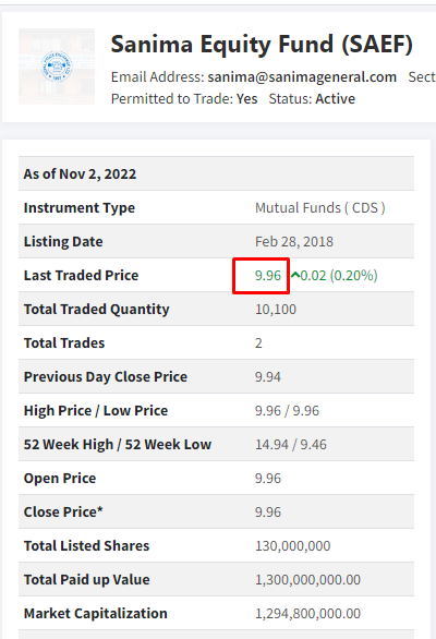 कम्पनीले यस अघि निष्काशन गरेका म्युचुअल फण्डलाई हेर्दा अहिले दोश्रो बजारमा राम्रो प्रस्तुती गर्न सकेको छैन । सानिमा इक्वीटी फण्ड अहिले दोश्रो बजारमा ९ रुपैयाँ ९६ पैसामा कारोवार भएको छ भने अर्को फण्ड सानिमा लार्ज क्याप फण्ड ७ रुपैयाँ २६ पैसामा कारोवार भएको छ ।