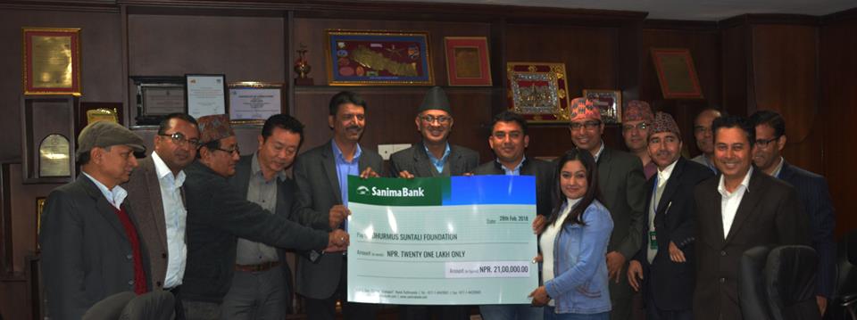 काठमाडौं । सानिमा बैंकले संस्थागत सामाजिक उत्तरदायित्व अन्तर्गत धुर्मुस सुन्तली फाउण्डेशनलाई २१ लाख रुपैयाँ सहयोग गरेको छ । बैंकका सञ्चालक तुकप्रसाद पौडेलले एक कार्यक्रमका बिच सो रकमको चेक फाउण्डेशनलाई हस्तान्तरण गरेका हुन् ।