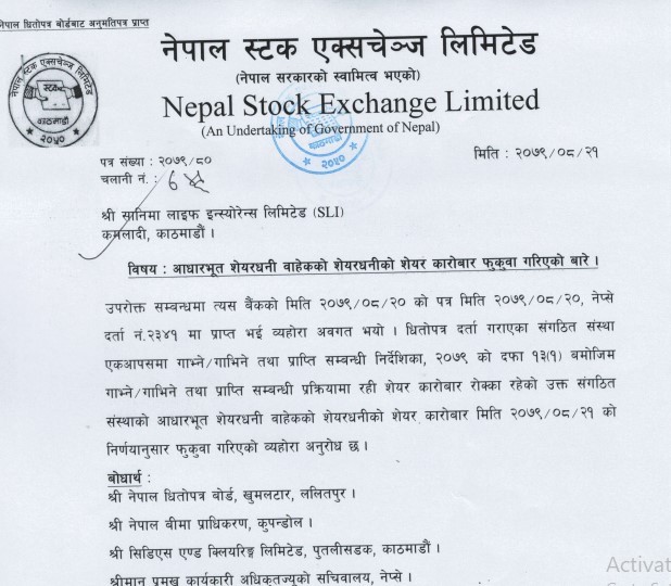 सानिमा लाइफको शेयर कारोबार फुकुवा