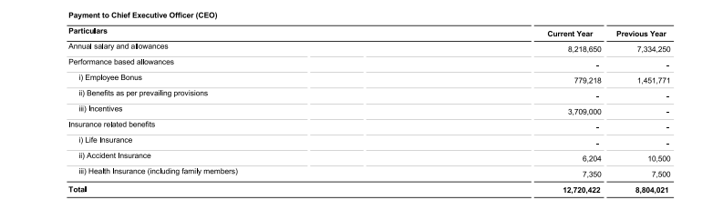 काठमाडौं । सिटिजन लाइफ इन्स्योरेन्स कम्पनीका प्रमुख कार्यकारी अधिकृत पोषक राज पौडेलको वार्षिक तलब सुविधा एक करोड २७ लाख रुपैयाँ रहेको छ । पौडेलले गत आर्थिक वर्ष २०७८/७९ मा वार्षिक तलब तथा अलाउन्सेस बापत ८२ लाख १८ हजार ६५० रुपैयाँ प्राप्त गरेका छन् । जवकी उनको यस भन्दा अघिल्लो आर्थिक वर्षको वार्षिक तलब तथा अलाउन्सेस ७३ लाख ३४ हजार थियो । अघिल्लो आर्थिक वर्ष २०७७/७८ मा उनले तलब अलाउन्से लगायत अन्य सेवा सुविधा सहित कुल ८८ लाख ४ हजार रुपैयाँ बुझेका थिए ।