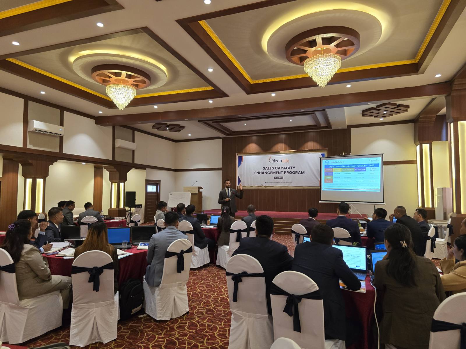 काठमाडौं । सिटिजन लाइफ इन्स्योरेन्स कम्पनीद्वारा आयोजित हुदै आएको “सेल्स क्यापासिटी इन्ह्यान्स्मेन्ट ट्रेनिङ्ग” कोे नवौं संस्करण सफलतापूर्वक सम्पन्न भएको छ । उक्त सीप र ज्ञान विकास मुलक कार्यक्रम २०८१ साल भाद्र महिनामा तीन दिनसम्म काठमाडौंको बौद्ध स्थित सिद्धार्थ बुटिक होटेलमा सञ्चालन गरिएको थियो । उक्त कार्यक्रमको मुख्य उद्देश्य विभिन्न शाखा कार्यालयका शाखा प्रमुखहरूको बिक्री विकास र व्यवसाय सञ्चालनको सन्दर्भमा सीप अभिवृद्धि गर्नु रहेको कम्पनीको भनाई छ ।