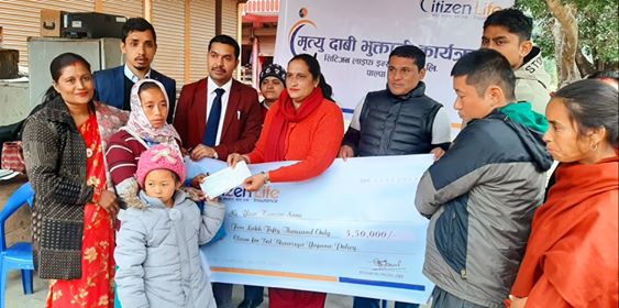 सिटीजन लाइफ इन्स्योरेन्सबाट छोरिको साढे ५ लाखको जीवन बीमा गरेका शिव बहादुर सारुको बीमा गराएको ४४ औँ दिनका दिन मृत्यु भएपछि उनको परिवारलाई सो दावी भुक्तानी गरिएको हो ।