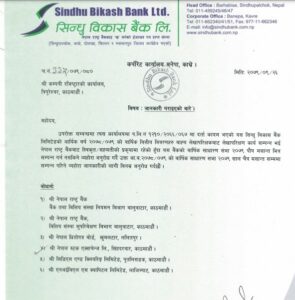 काठमाडौं । सिन्धु विकास बैंकले आर्थिक वर्ष २०७८/०७९ को वार्षिक साधारणसभा पुष मसान्तभित्र नगर्ने भएको छ ।