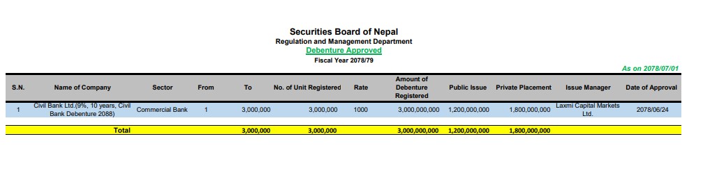 कम्पनीले उक्त ऋणपत्र निष्काशन गर्नका लागि धितोपत्र बोर्डबाट असोज २४ गते अनुमति पाएको हो ।