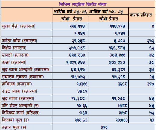 सिभिल लघुवित्तको खुद नाफा ४५ प्रतिशतले बढ्दा अन्य वित्तीय सूचकको अवस्था कस्तो ?