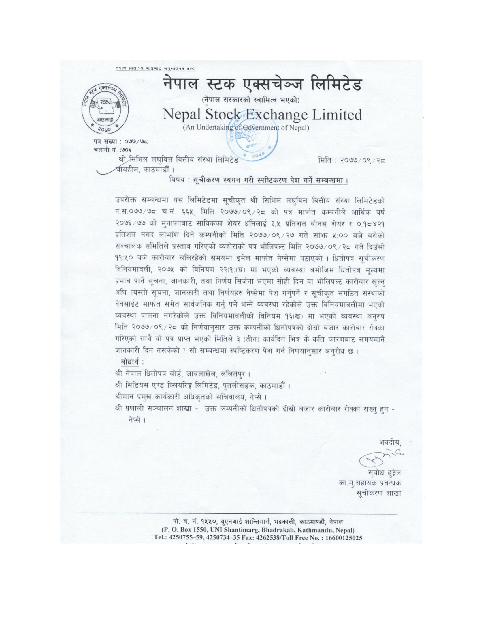 सिभिल लघुवित्तको शेयर कारोबार रोक्का, नेप्सेले माग्यो तीन दिने स्पष्टिकरण