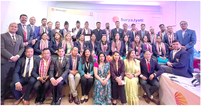 काठमाडौं । सूर्यज्योति लाइफ इन्स्योरेन्सले एमडिआरटी मिट २०२३ धुलिखेलमा भव्यताका साथ सम्पन्न गरेको छ । उक्त कार्यक्रममा एमडिआरटी २०२३ का लागि मनोनित सम्पुर्ण एमडिआरटीहरुलाई सम्मान गर्नुका साथै सिओटी हुन सफल गौरब कुमार शाही र टिओटी कमल प्रसाद घिमिरेलाई विशेष सम्मान गर्दै टिओटी कमल प्रसाद घिमिरेलाई रोयल इन्फिल्ड मोटरसाईकल कम्पनीका प्रमुख कार्यकारी अधिकृत प्रकाश विक्रम खत्रीले हस्तान्तरण गरेका हुन् ।