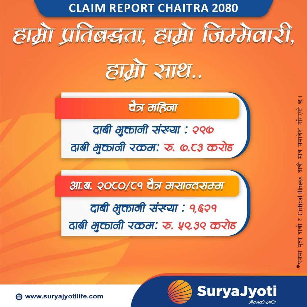 त्यस्तै, कम्पनीले चालु आर्थिक वर्ष २०८०/८१ को चैत मसान्तसम्ममा १६ सय २१ वटा दाबीबापत ५९ करोड ३९ लाख रुपैयाँ दाबी भुक्तानी गरेको छ ।