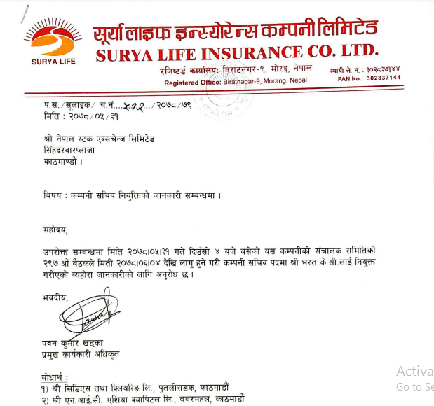 सूर्या लाइफको कम्पनी सचिवमा के.सी.नियुक्त