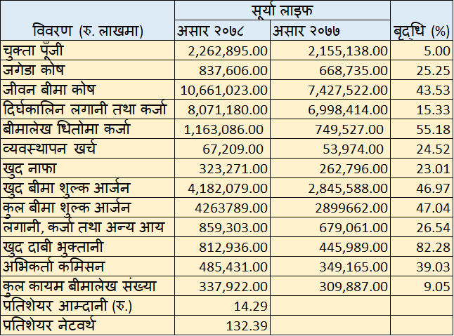 सूर्या लाइफको जीवन बीमा कोष १० अर्ब नाघ्यो, सम्पुर्ण सूचकमा उल्लेख्य सुधार