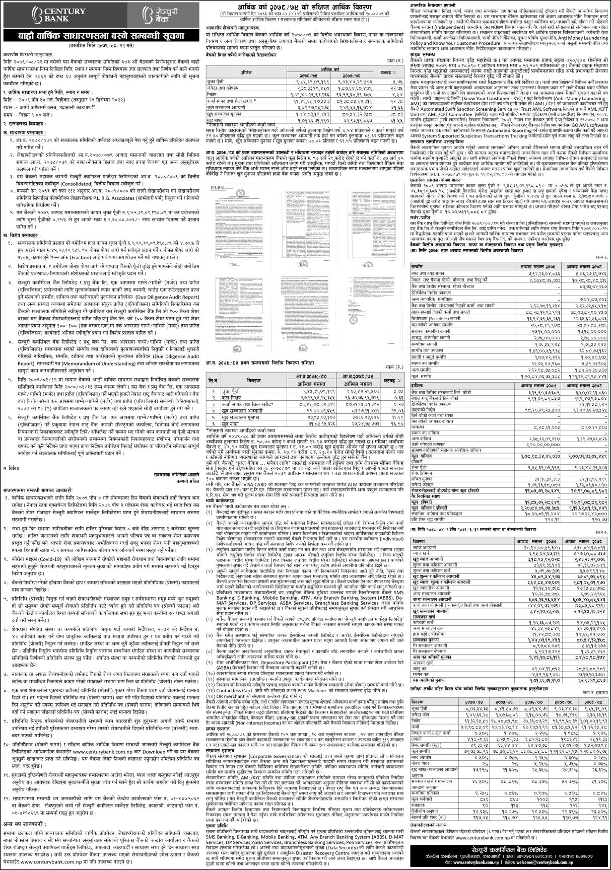 काठमाडौं । सेञ्चुरी कमर्सियल बैंकले १२औं साधारणसभा आह्वान गरेको छ । बैंकले पुस १४ गते बिहिबार आर्मी अफिसर्स क्लबमा सभा आह्वान गरेको हो । बैंकको मंसिर २१ गते बसेको संचालक समितिको बैठकले उक्त सभाको मिति तय गरेको हो ।