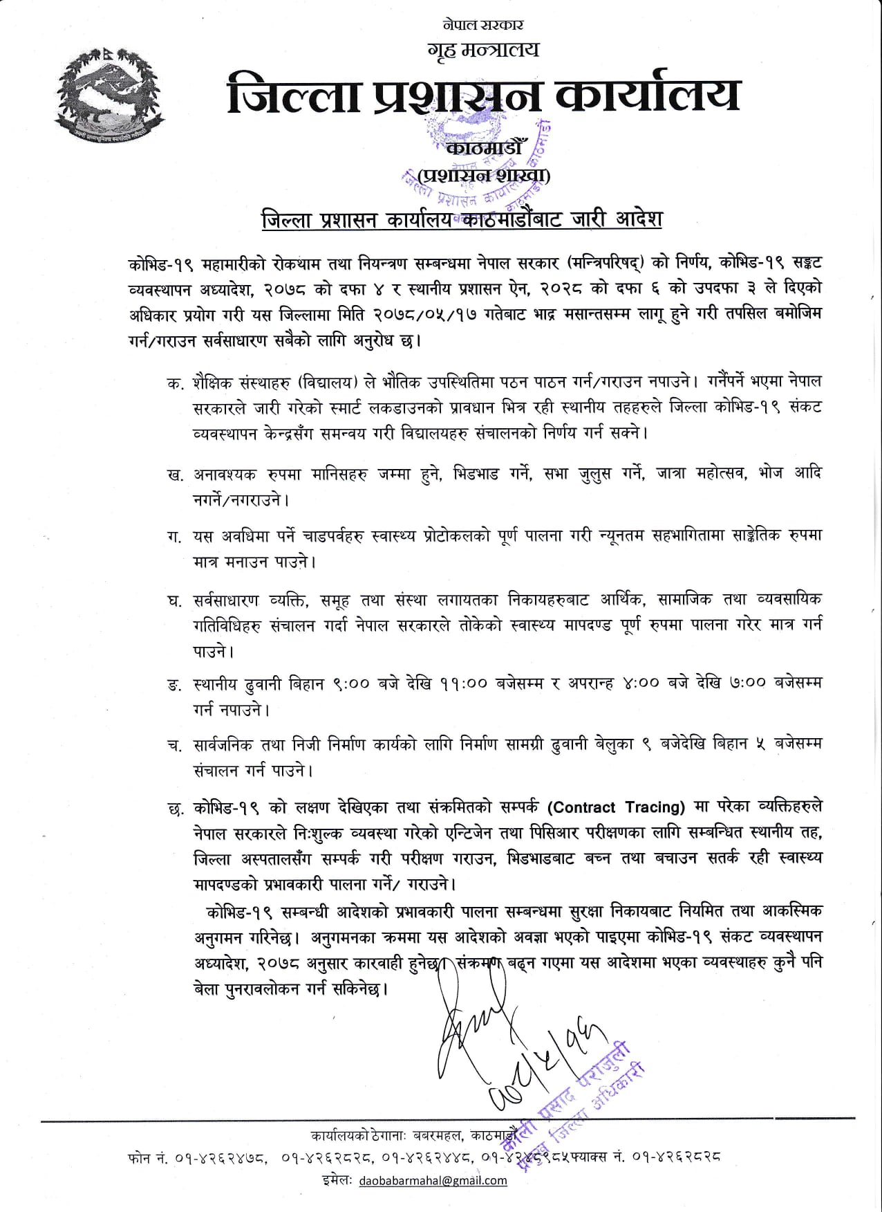 निषेधाज्ञा हटाइए पनि कोरोना संक्रमणको जोखि रहिरहेकाले भिडभाड नगर्न तथा स्वास्थ्य मापदण्ड अपनाउन पर्ने जनाएका छन् ।