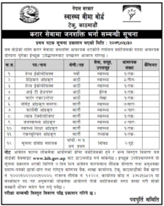 काठमाडौं । स्वास्थ्य बीमा बोर्डले कर्मचारीको माग गरेको छ । बोर्डले करार सेवामा २७ जना कर्मचारीको माग गरेको हो ।
