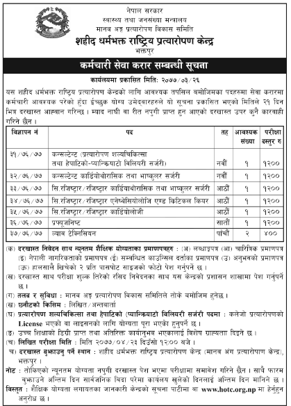 स्वास्थ्य तथा जनसंख्या मन्त्रालयले माग्यो सात पदका लागि कर्मचारी