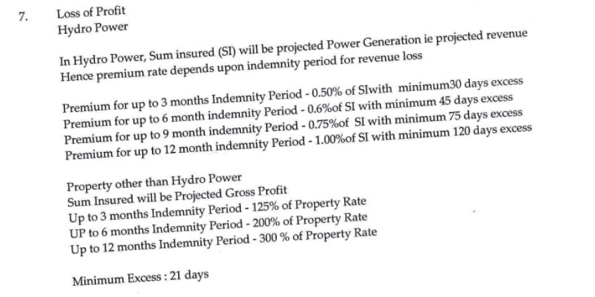समितिले एक वर्ष अवधिको बीमा गर्दा सुरुको तीन महिनासम्म दाबी नपाउने व्यवस्थालाई संसोधन गर्दै दुई महिनामा झारेको छ । अव जलविद्युत कम्पनीहरुले एक वर्षको बीमा गर्दा ६० दिन पछि मात्रै लस अफ प्रोफिट अन्तर्गतको क्षति बापतको दाबी पाउन सक्नेछन् । यदि जलविद्युत कम्पनीले एक वर्ष अवधिको बीमा गर्यो भने सुरुको ६० दिन क्षति भएका खण्डमा पनि दाबी पाउदैनन् । उनिहरुकोले बीमा गरेको ६० दिन पछिको समयमा मात्रै यस्तो दाबी पाउनेछन् ।