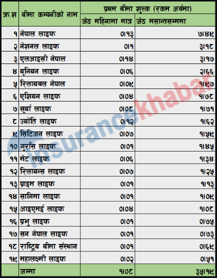 ११ महिनामा जीवन बीमा कम्पनीले संकलन गरे ३५ अर्ब १९ करोड प्रथम बीमा शुल्क, कसको कति ? (सूचि सहित)