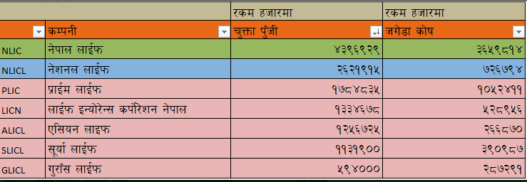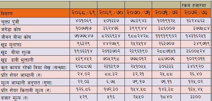 •  कम्पनीको जीवन बीमा कोषमा २३ प्रतिशतले वृद्धि भएर २२ अर्ब ५४ करोड रुपैयाँ पुगेको छ । त्यस्तै, महाविपति जगेडाकोष कोषमा कम्पनीले १७ करोड ५ लाख रुपैयाँ संचित छ ।
