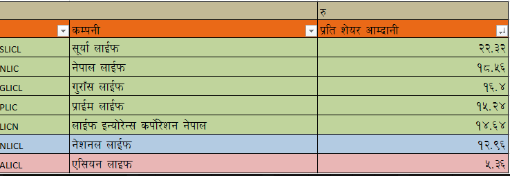 खुद नाफा र प्रति शेयर आम्दानीको आधारमा