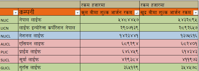 कम्पनीले बीमा शुल्क आर्जन रकममा सामान्य मात्र वृद्धि गर्न सफल भएको छ र कुल कायम बीमा लेख संख्यामा कमी आएको छ ।