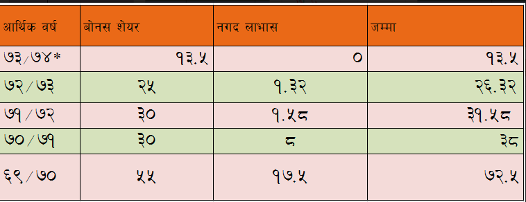 प्रस्तावित लाभासं बीमा समिति र कम्पनीको आर्थिक वर्ष ७३/७४ को वार्षिक साधारण सभाले पारित गर्न बाँकी छ । अहिले कम्पनीको पुँजी २ अर्ब ६२ करोड छ । प्रस्तावित बोनस पश्चात कम्पनीको पुँजी ३ अर्ब पुग्ने छ ।