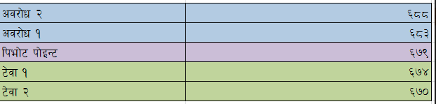 खुला : ६८५ उच्च :६८५ न्यून : ६७६ बन्द :६७८