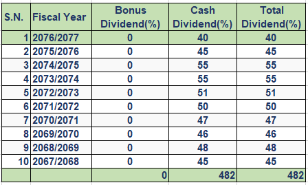 यस्तो छ कम्पनीको लाभांस वितरणको १० वर्षे इतिहास