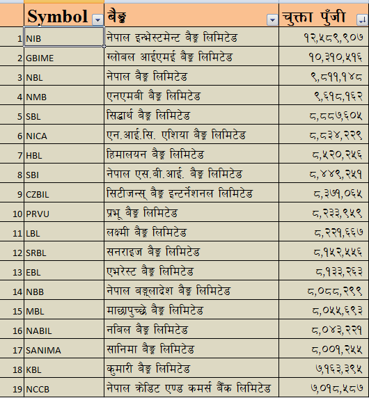 किताबी मूल्यको आधारमा नेपाल बैंक अघि छ । नेपाल बैंकको किताबी मूल्य ३०० रुपैँया २८ पैसा रहेको छ ।