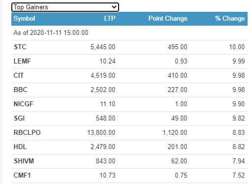 आज सबैभन्दा धेरै साल्ट ड्रेडिङ कम्पनीका लगानीकर्ताले १० प्रतिशतका दरले कमाएका छन् । त्यस्तै, लक्ष्मी इक्यिुटी फण्डका लगानीकर्ताले ९ प्रतिशतभन्दा बढीको दरले कमाएका छन् । नागरिक लगानी कोषका लगानीकर्ताले ९ दशमलव ९८ प्रतिशतकबा दरले कमाएका छन् ।