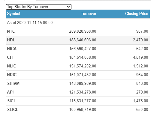आज दिनभरिमा १ सय ९५ कम्पनीको १ करोड २५ लाख २३ हजार ६ सय ५१ कित्ता शेयर किनबेच हुँदा ४ अर्ब ९ करोड ९६ लाख ४ हजार रुपैयाँको शेयर कारोबार भएको छ । आज भन्दा धेरै नेपाल टेलिकमको २५ करोड ९० लाख रुपैयाँको कारोबार भएको छ । हिमालयन डिस्टीलरीको १८ करोड रुपैयाँमाथिको कारोबार भएको छ । एनआइसी एशिया बैंकको १५ करोडमाथि, नागरिक लगानी कोषको १५ करोडमाथिको नेपाल लाइफ इन्स्योरेन्सको पनि १५ करोडमाथिकै कारोबार भएको छ ।