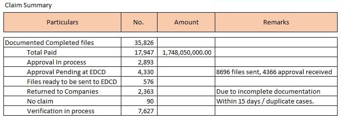 समितिका अनुसार २८९३ वटा फाईल प्रक्रियामा रहेको, ४३३० वटा फाईल प्रमाणिकरणको प्रक्रियामा रहेको, ५७६ वटा फाईल स्वास्थ्य सेवा विभागमा पठाउन तयारी अवस्थामा राखिएको र २३६३ वटा फाईल कागजात नपुगेकाले बीमा कम्पनीमै फिर्ता गरिएको जनाएको छ ।