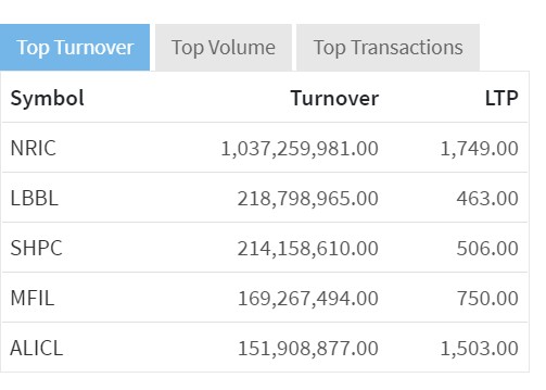 काठमान्डौ। नेपाल पुनर्बीमाको ३ घण्टा नपुग्दै १ अर्ब माथिको शेयर कारोवार भएको छ। केही दिन यता नेपाल पुनर्बीमाको शेयर मुल्यमा निकै धेरै चहलपहल देखिएको छ। कम्पनीको बजार मूल्य आज १७०० माथि पुगेको छ। यो समाचार तयार पार्दा सम्म कम्पनीको बजार मूल्य १७४९ रुपैयाँ पुगेको छ। कम्पनीको बजार मूल्य प्रति कित्ता १०० रुपैयाँ भन्दा धेरैले वृद्धि भएको छ।