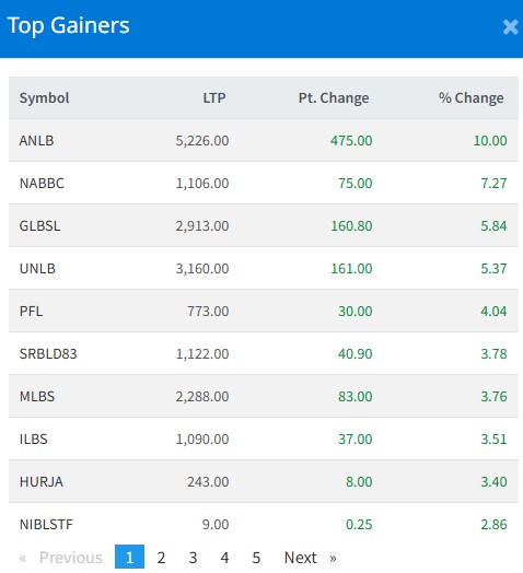 आज सबैभन्दा धेरै आत्मानिर्भर लघुवित्त वित्तीय संस्थाका लगानीकर्ताले कमाएका छन् । आज यस कम्पनीका लगानीकर्ताले १० प्रतिशतका दरले कमाएका हुन् । नारायणी डेभलपमेन्ट बैंकका लगानीकर्ताले ७ प्रतिशतका दरले कमाएका छन् । गुराँस लघुवित्तका लगानीकर्ताले ५ प्रतिशतका दरले कमाएका हुन् । यूनिक नेपाल लघुवित्तका लगानीकर्ताले ५ प्रतिशतका दरले कमाएका छन् ।