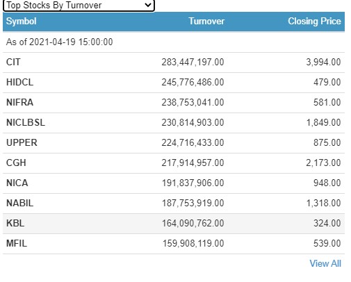 त्यसैगरी एनआइसी एशिया लघुवित्त वित्तीय संस्थाको २३ करोडमाथिको शेयर करोबार भएको छ । अपर तामाकोशीको २२ करोड ४७ लाख रुपैयाँको शेयर कारोबार भएको छ ।